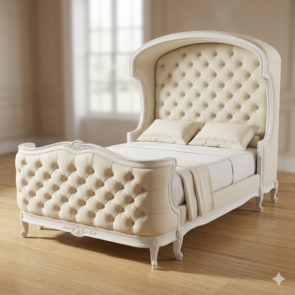 bed canopy cream fabric.