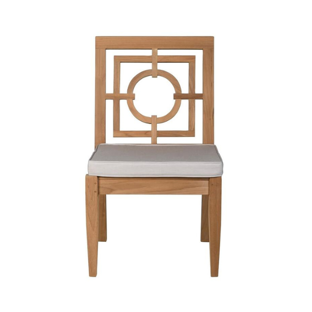 Contemporary Teak Dining Chair Furniture with Circle Pattern Backrest and Wooden Seat
