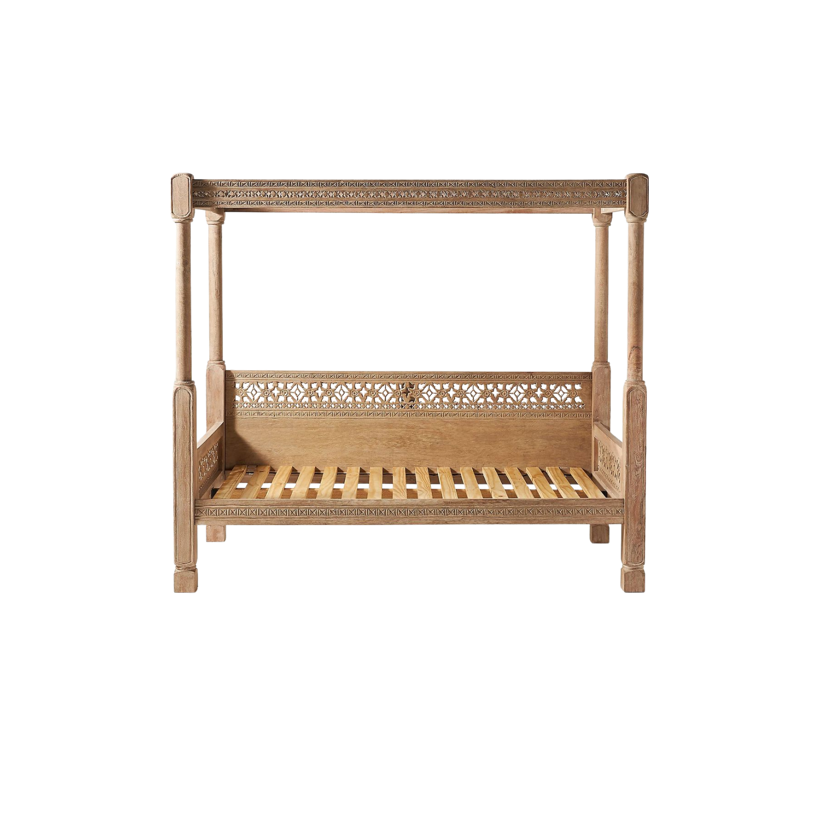 Handcrafted Wooden Canopy Bed Frame for Outdoor Use