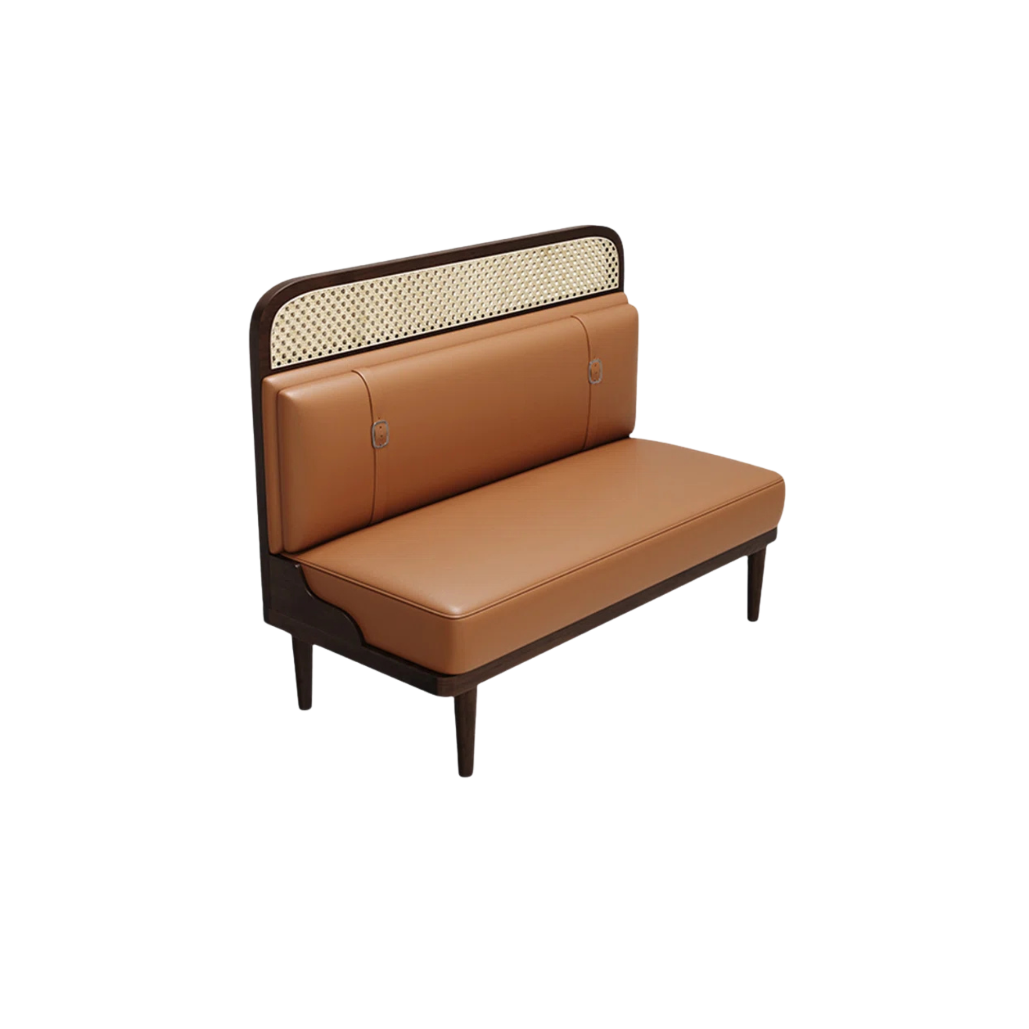 Indoor Cafe Bench With Cushioned Seat And Cane Backrest