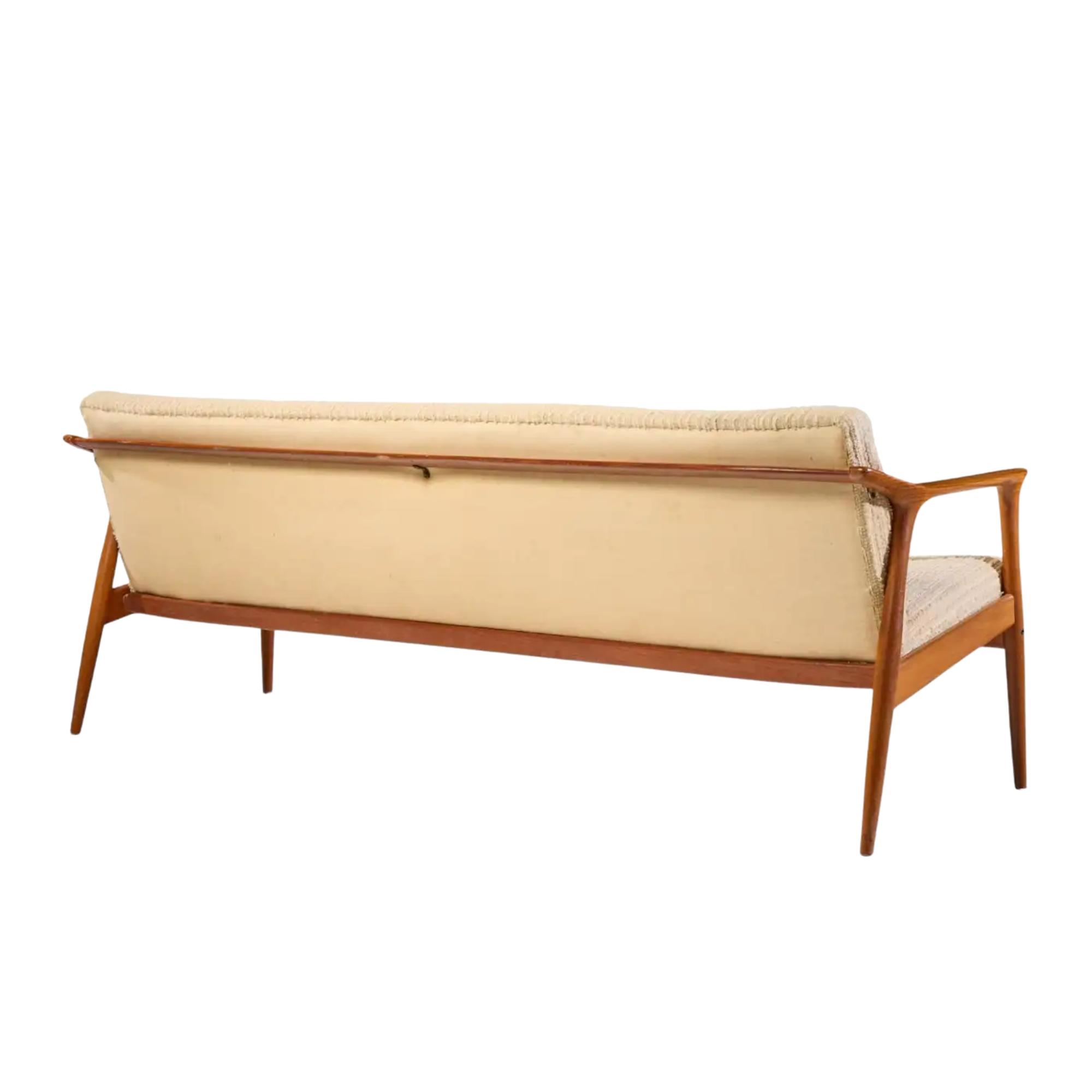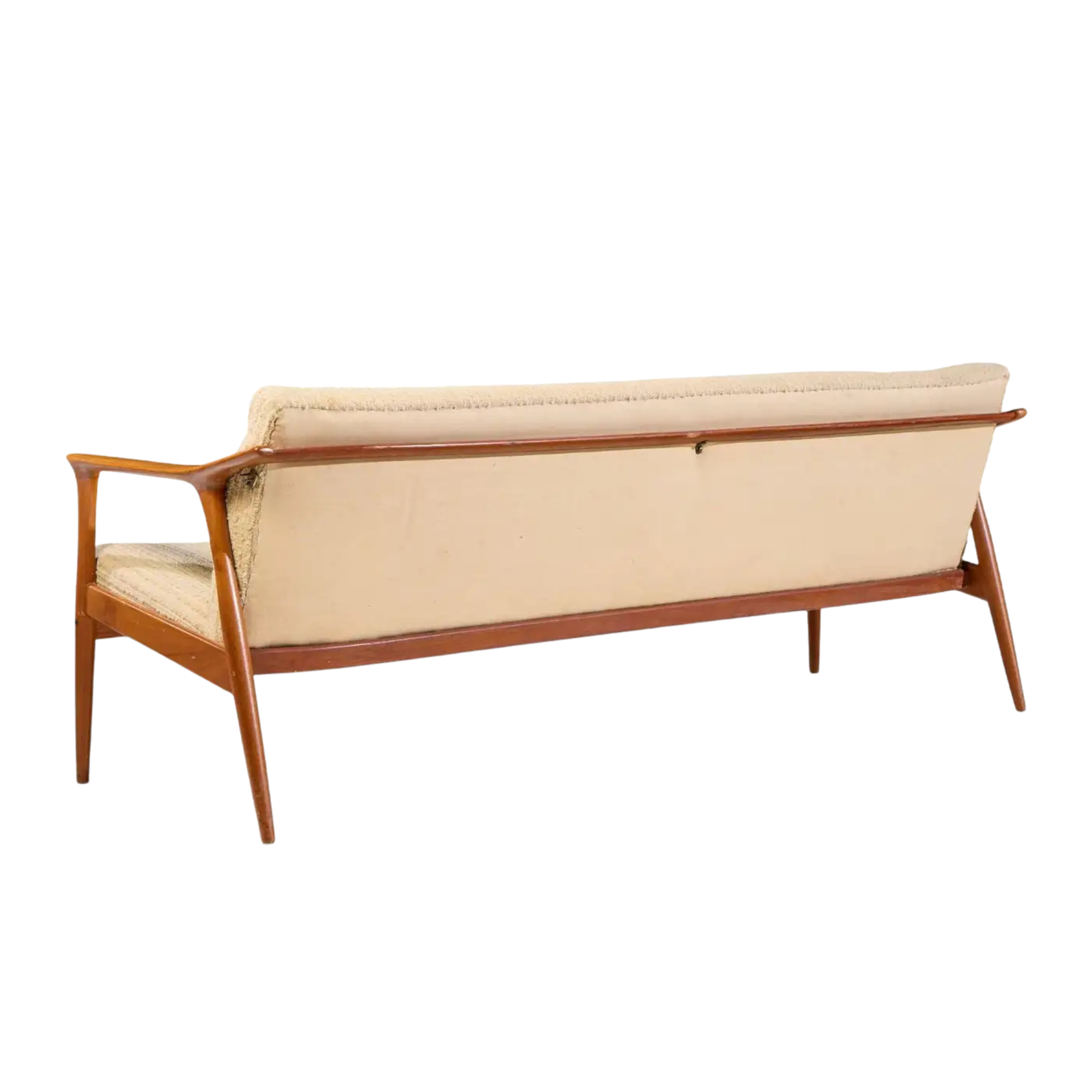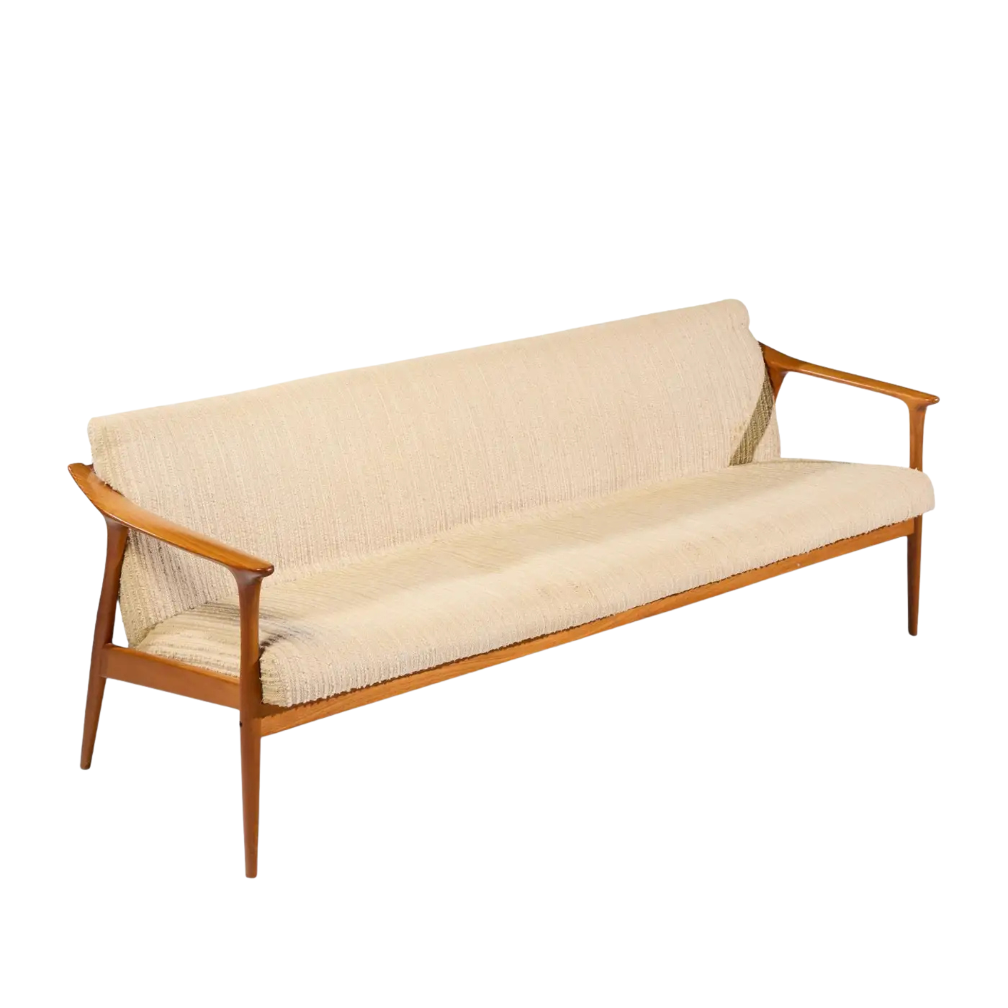 Long Wooden Indoor Lobby Sofa with Neutral Cushioned Seat