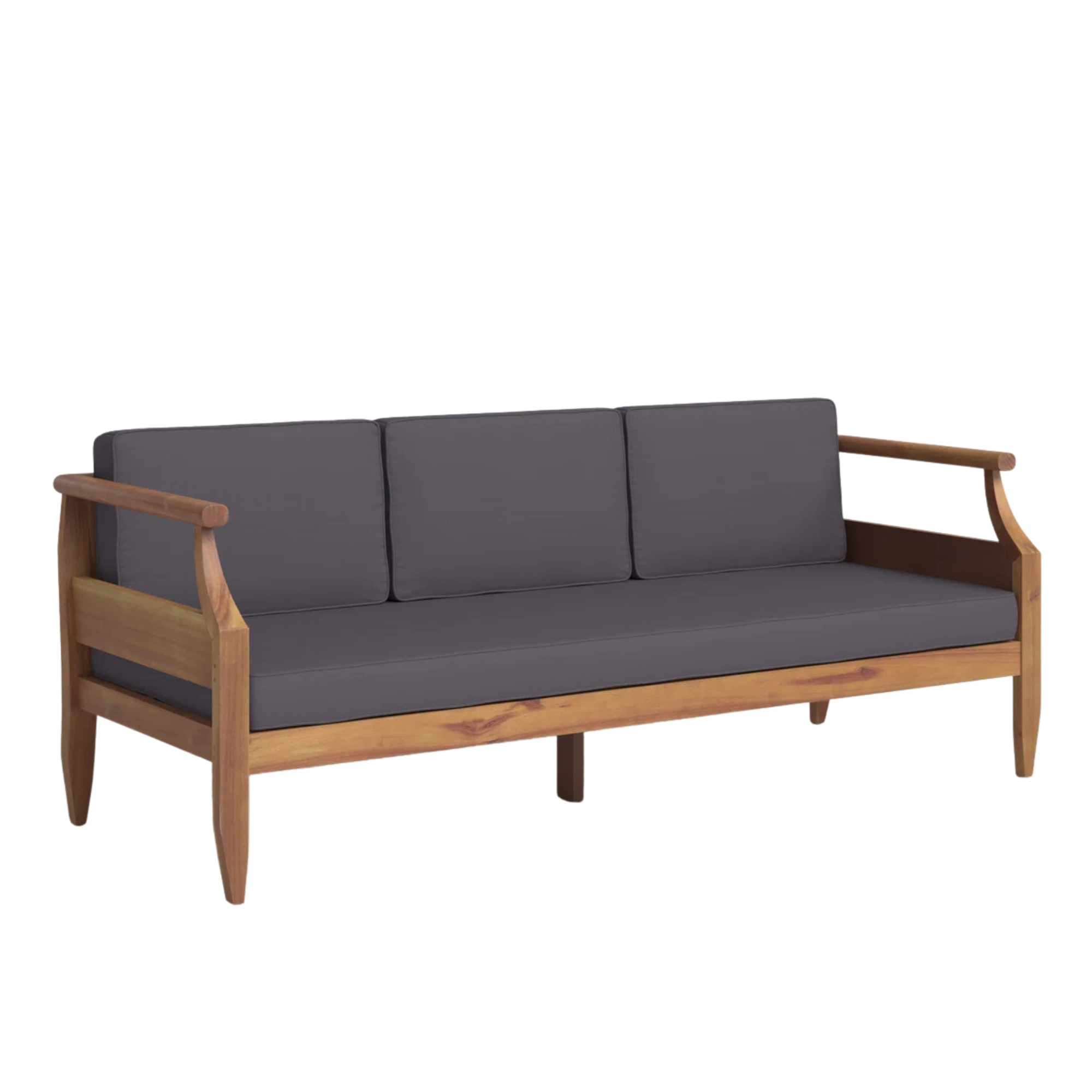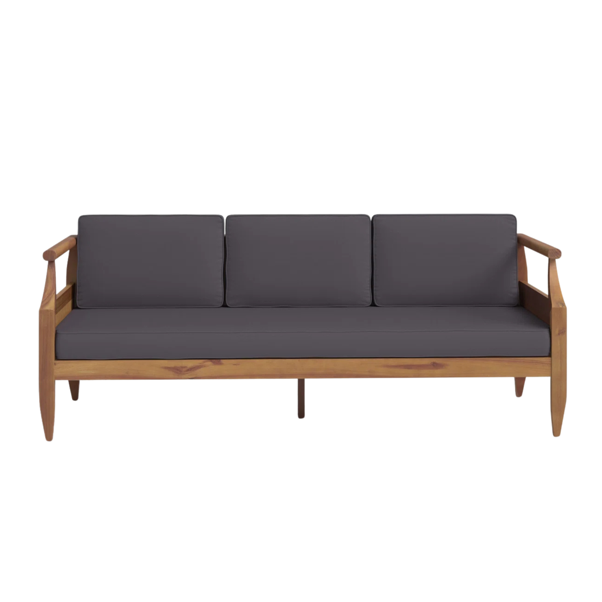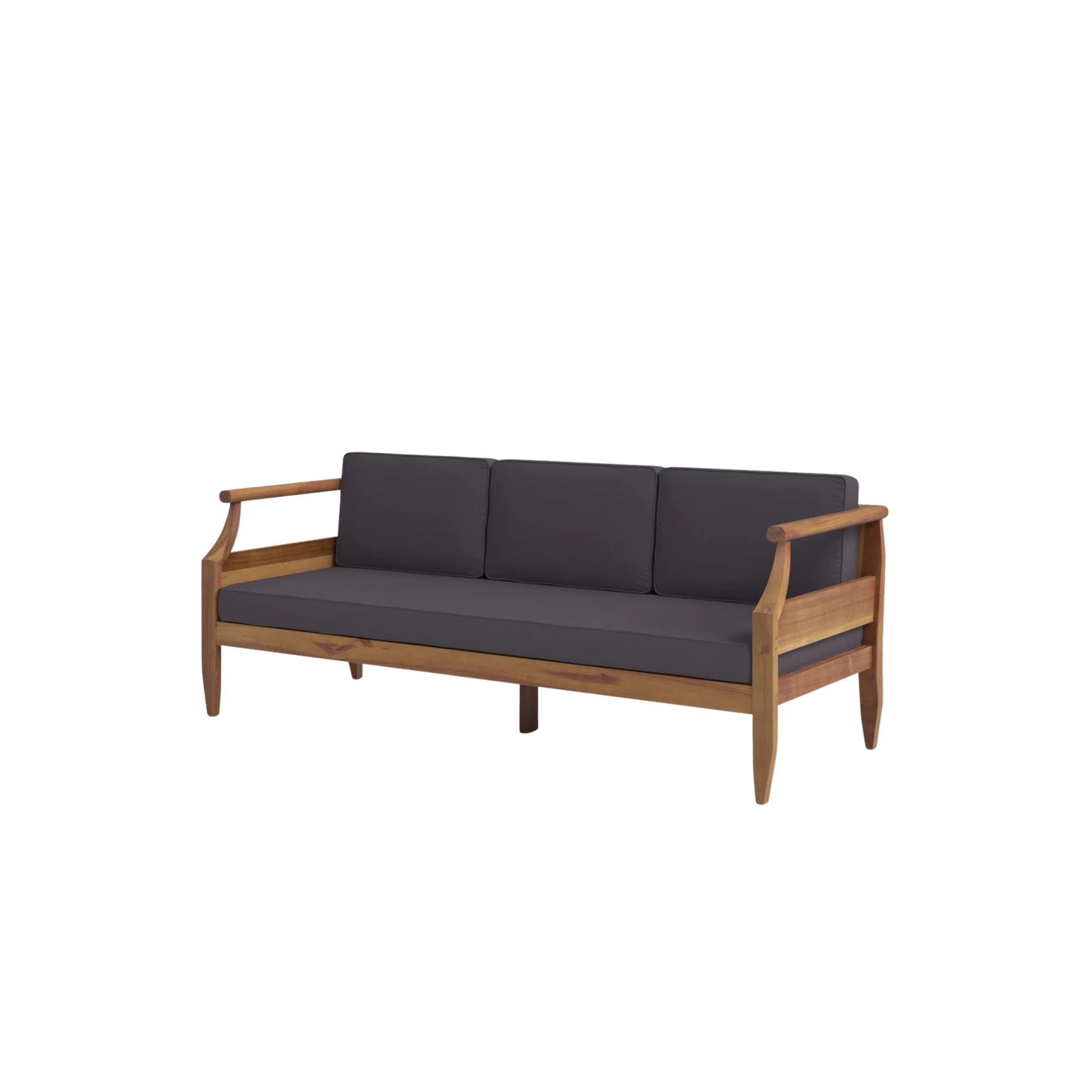 Minimalist Teak Wood Lobby Sofa with Dark Cushions Indoor