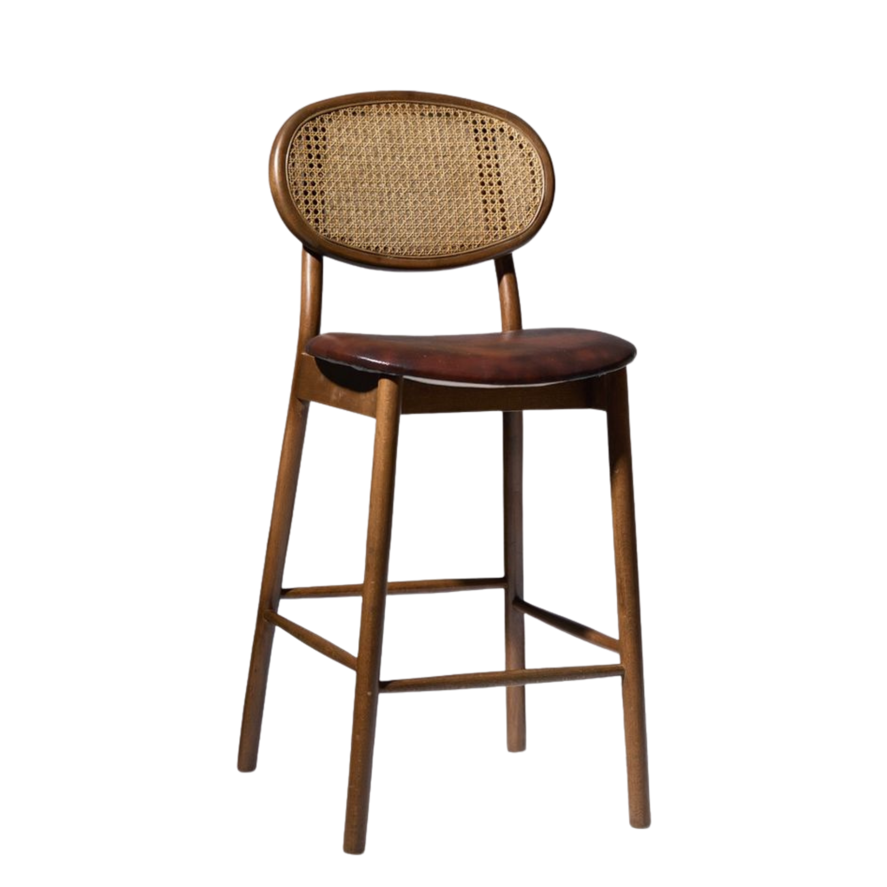 Modern Rattan Bar Stool – Wooden Frame with Leather Seat