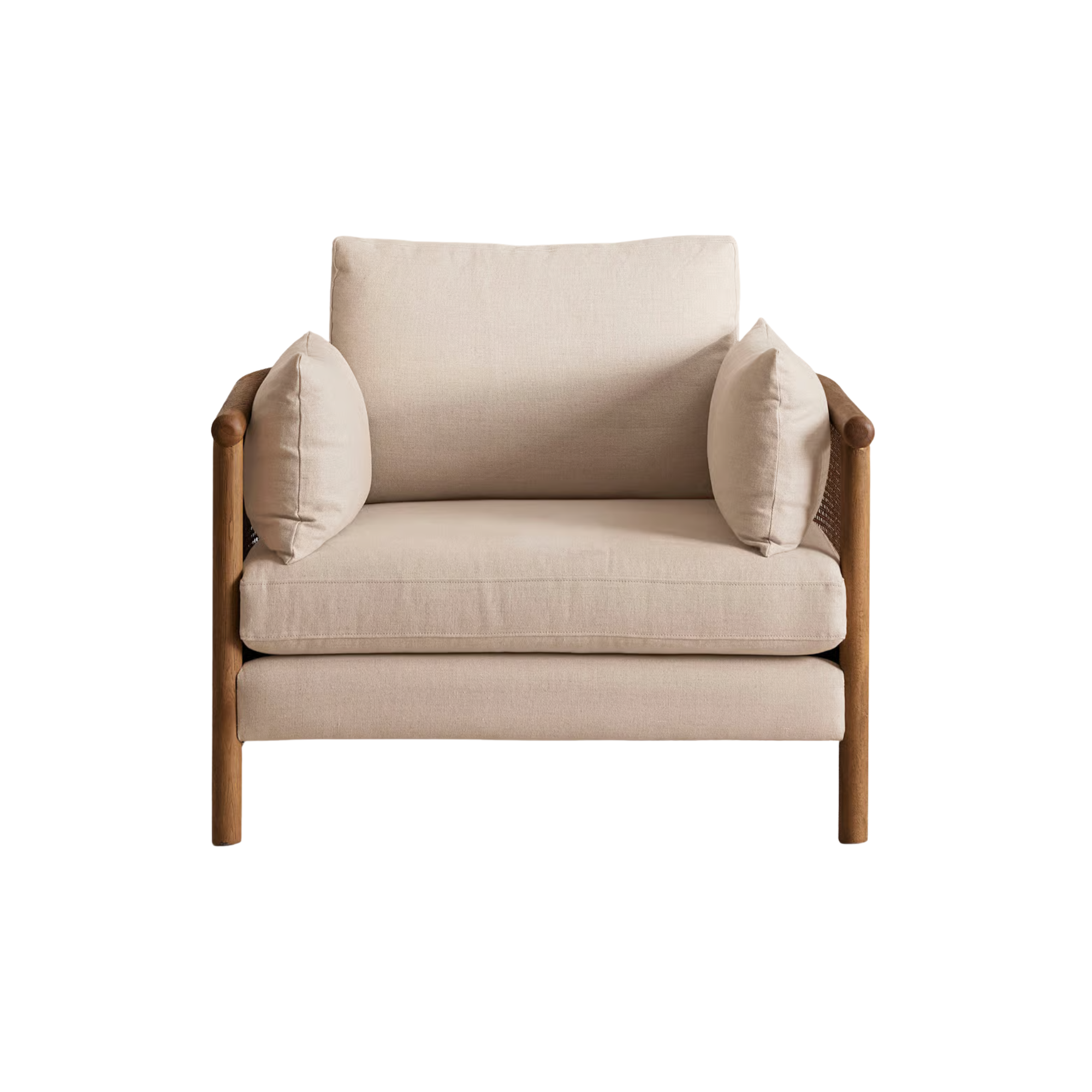 Modern Relax Wood Chair Rattan Cane Back Accent Armchair