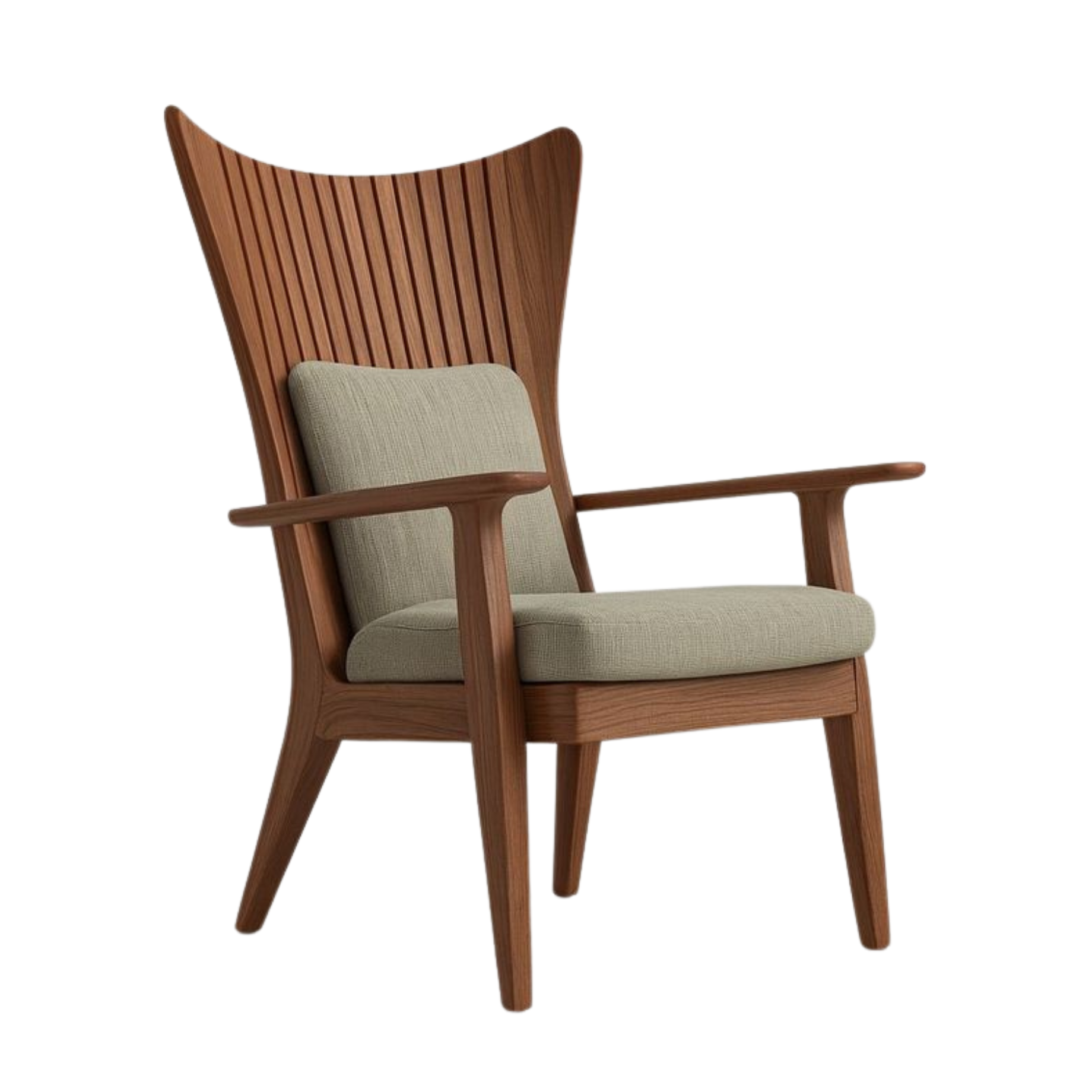 Modern Solid Wood Armchair – Scandinavian Lounge Chair with Upholstered Cushion