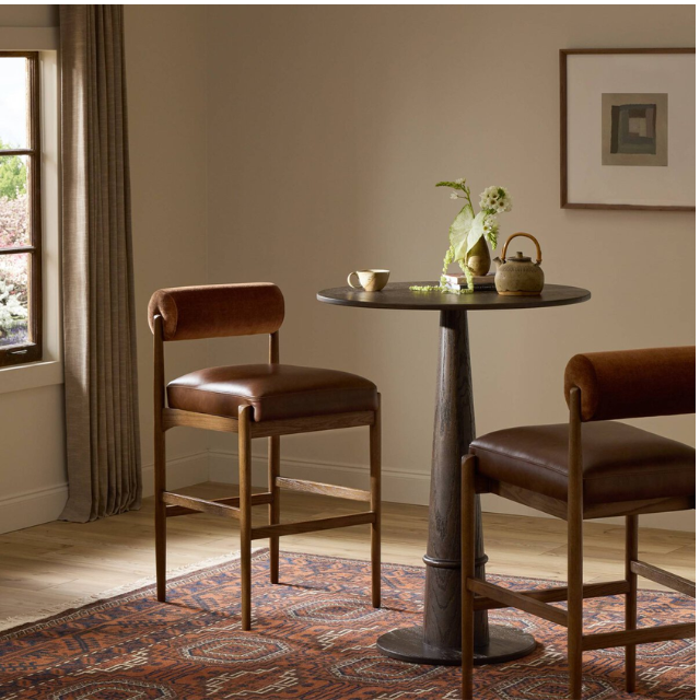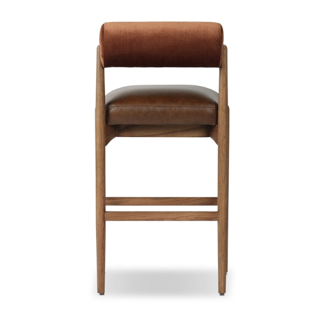Modern Solid Wood Bar Stool, Cylindrical Velvet Backrest | High Counter Chair