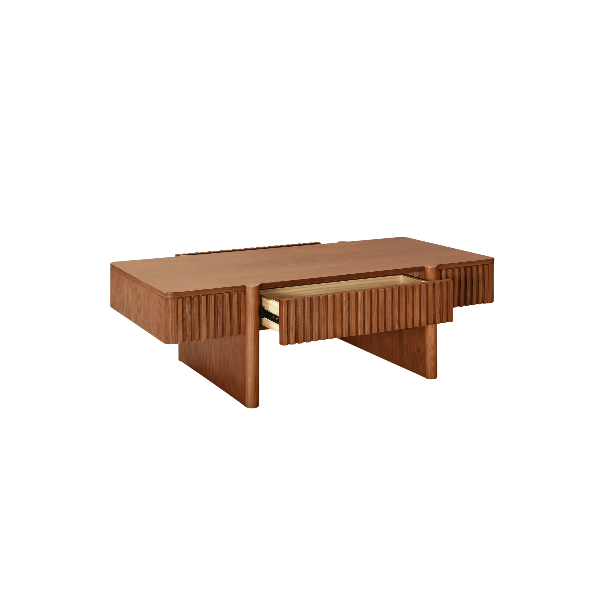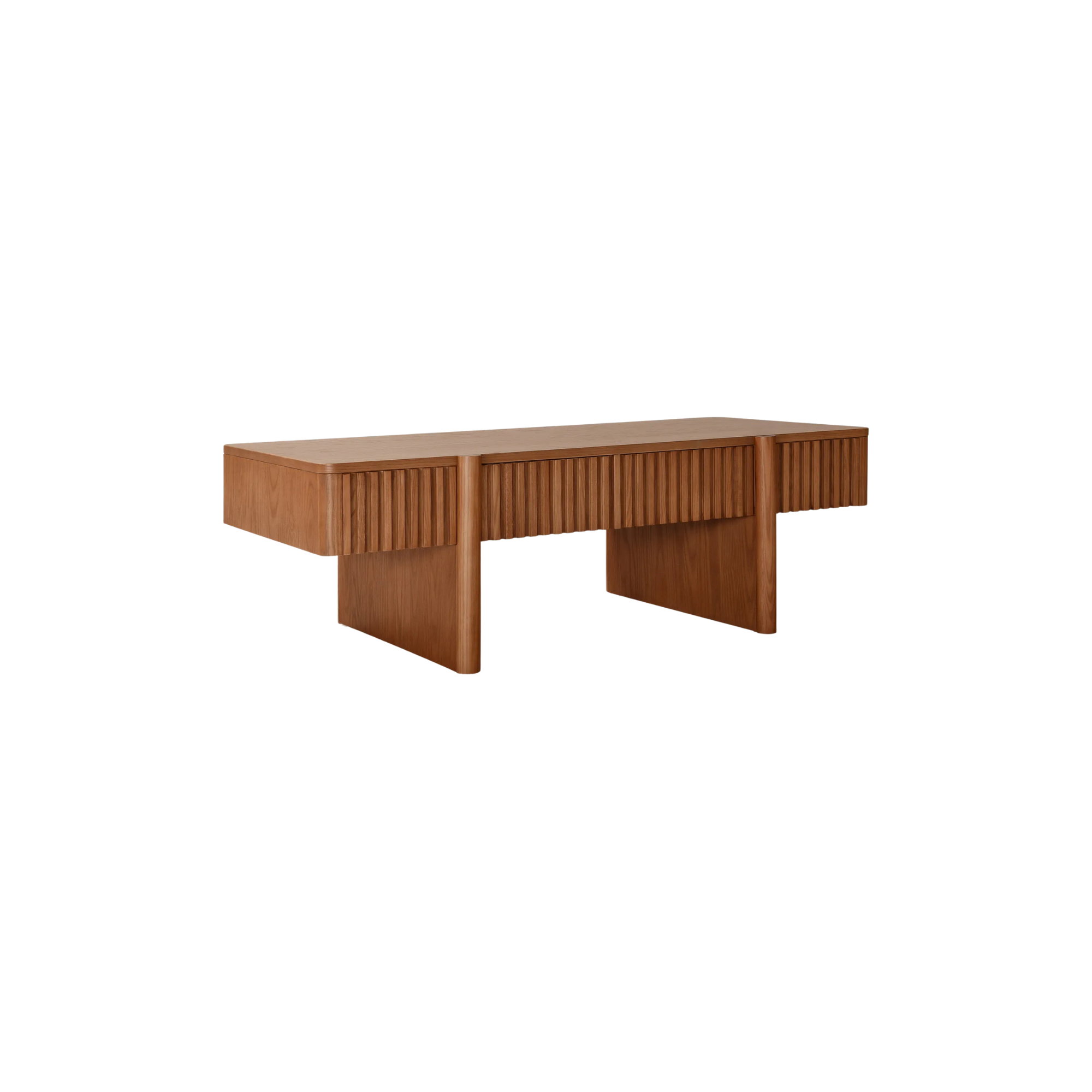 Modern Solid Wood Coffee Table with Fluted Design