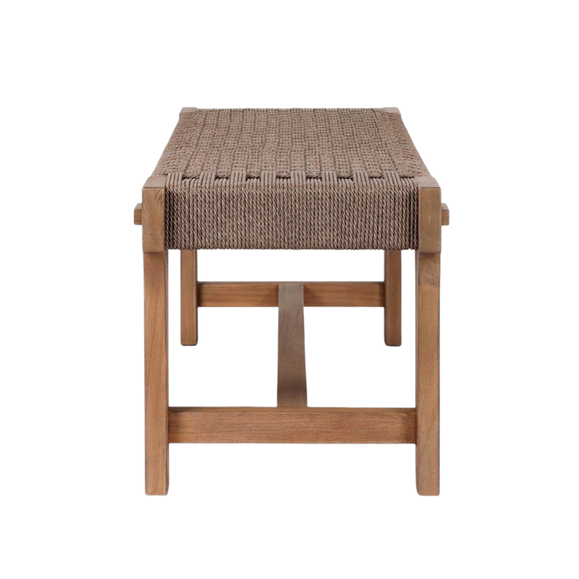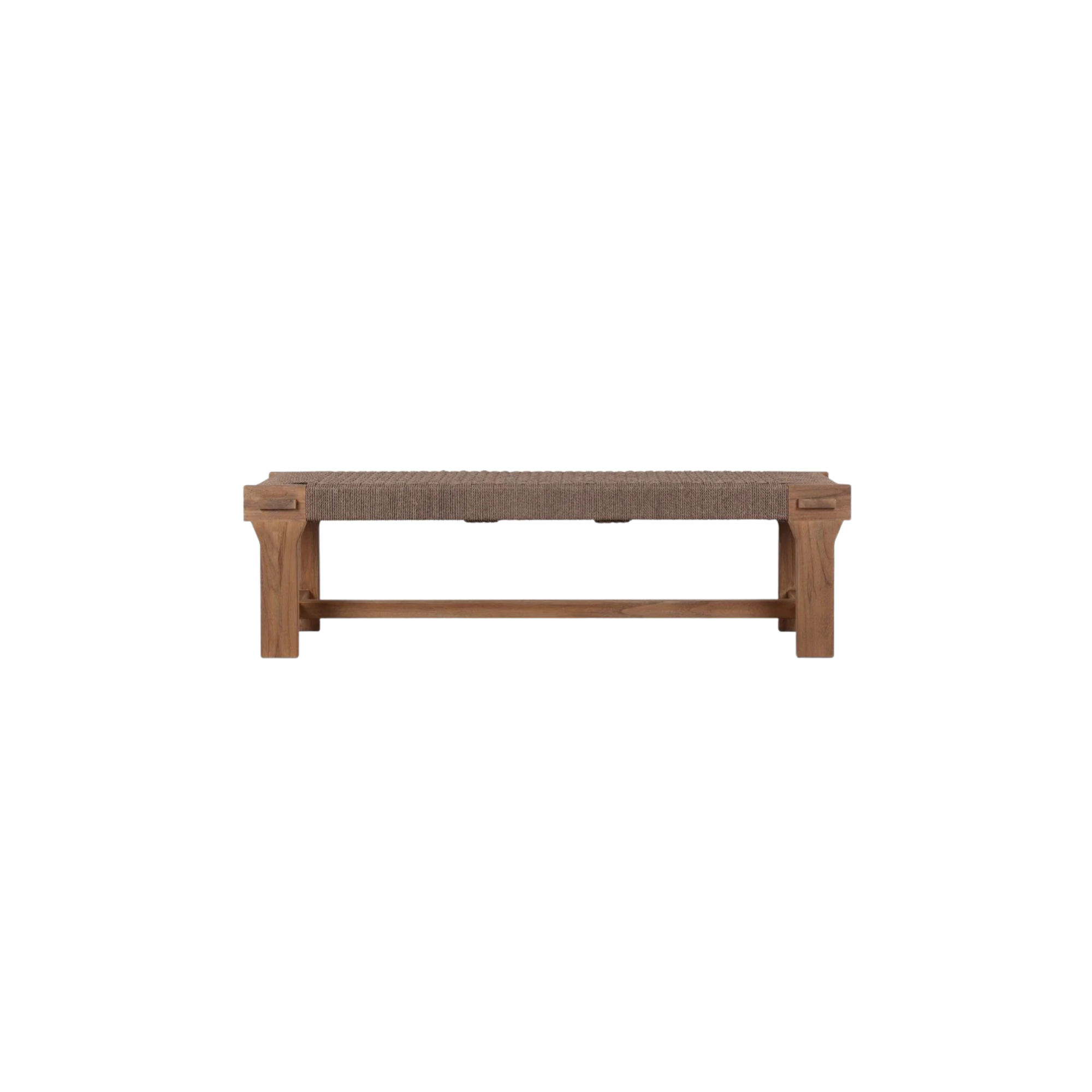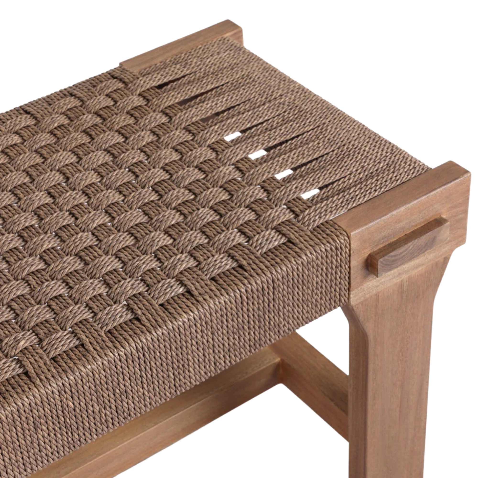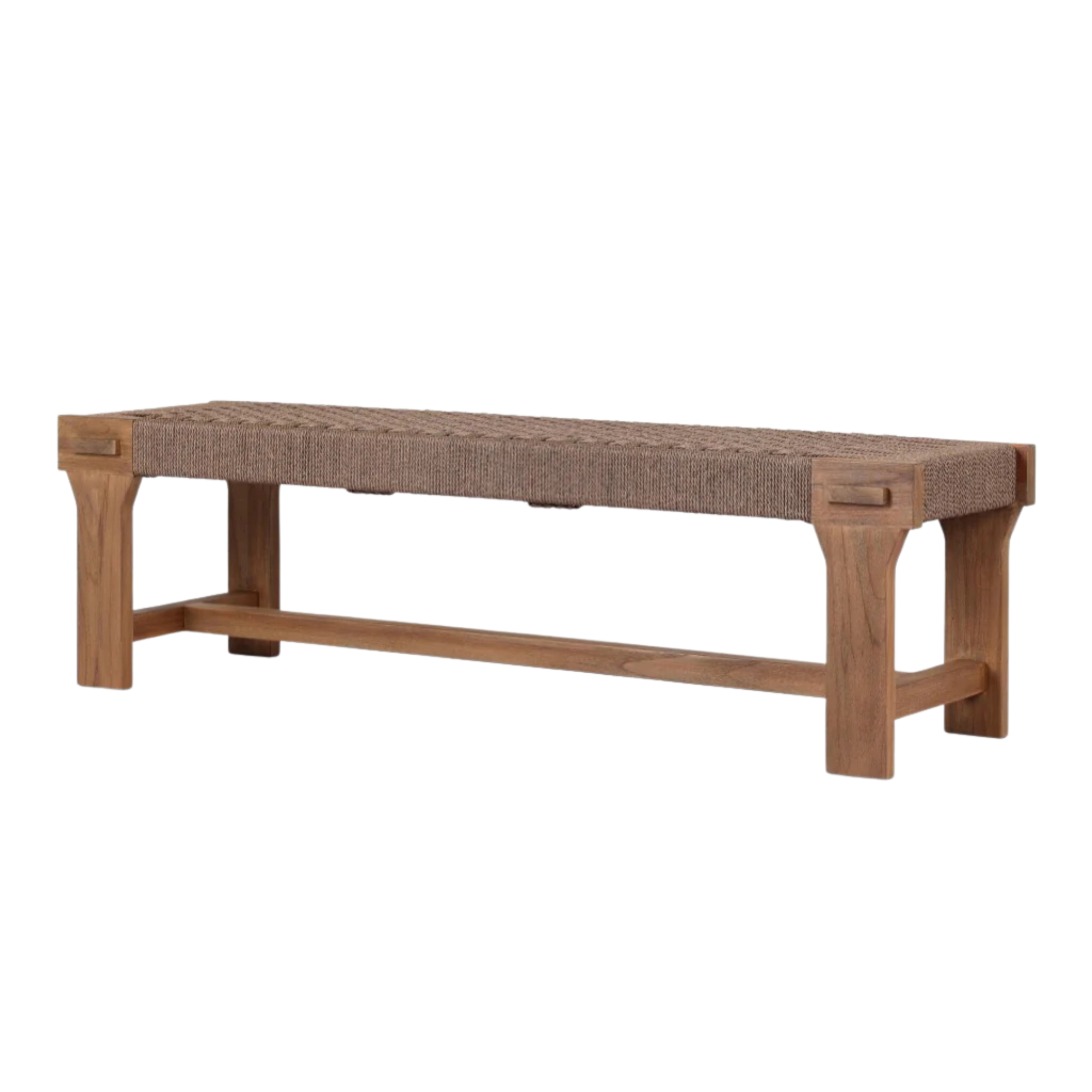 Modern Teak Wood Bench Featuring Woven Rope Design