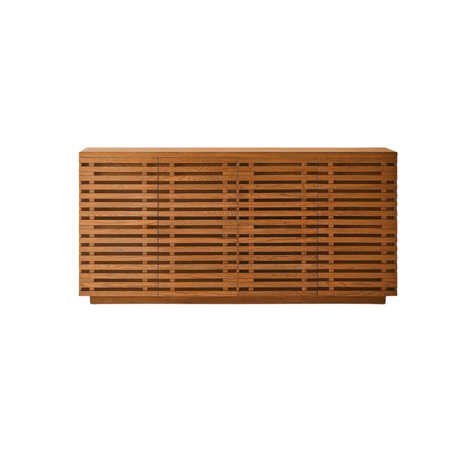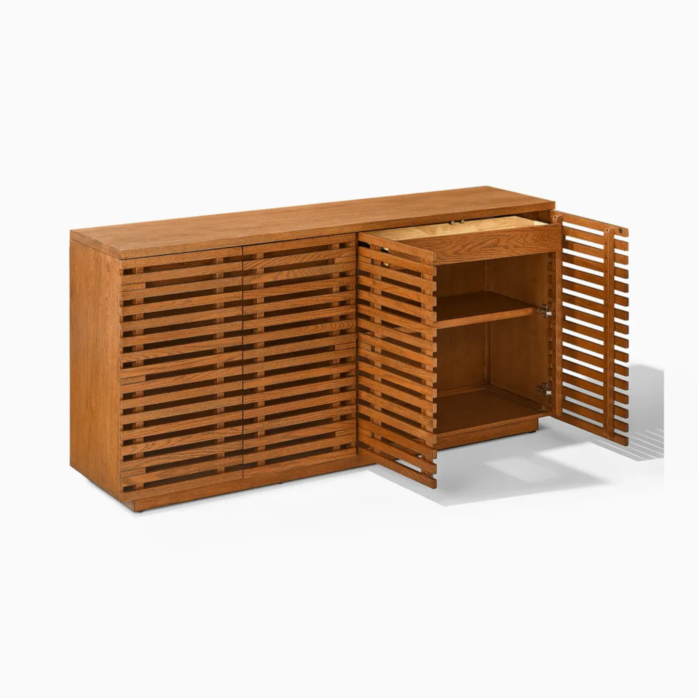 Modern Teak Wood Slatted Buffet Sideboard Cabinet