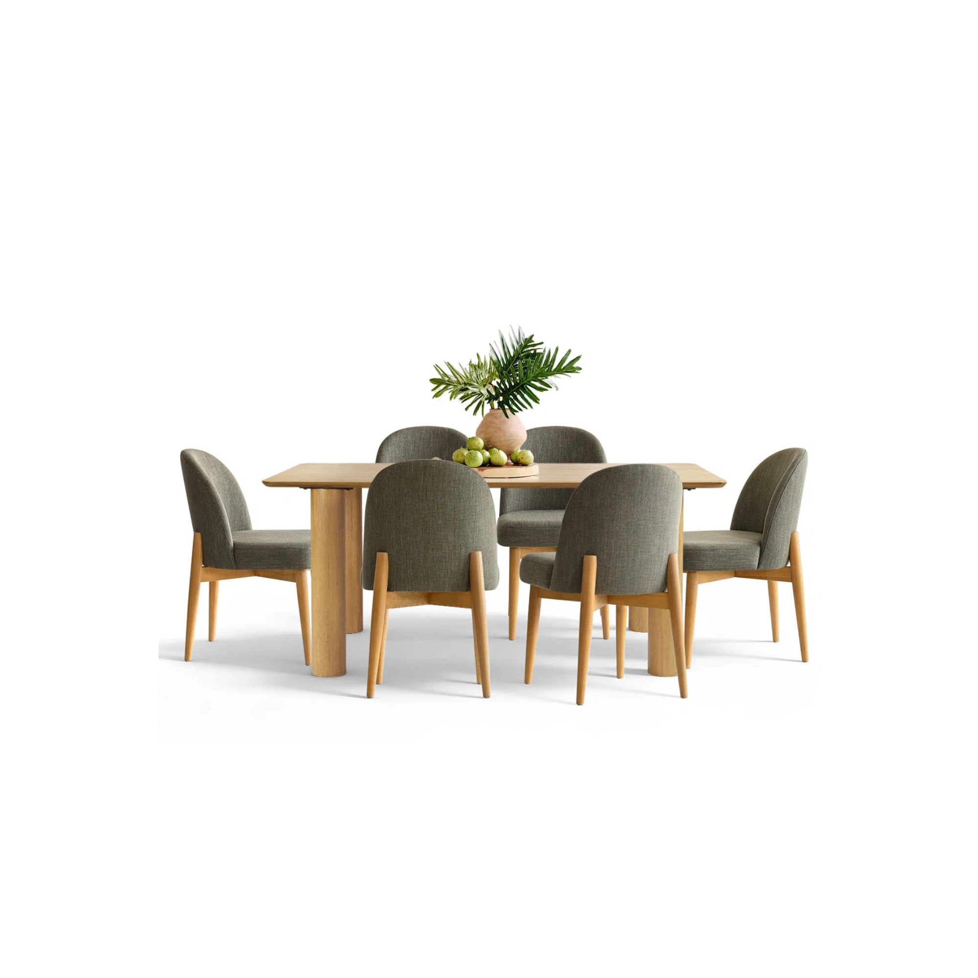Modern Wooden Dining Set with Soft-Tone Chairs