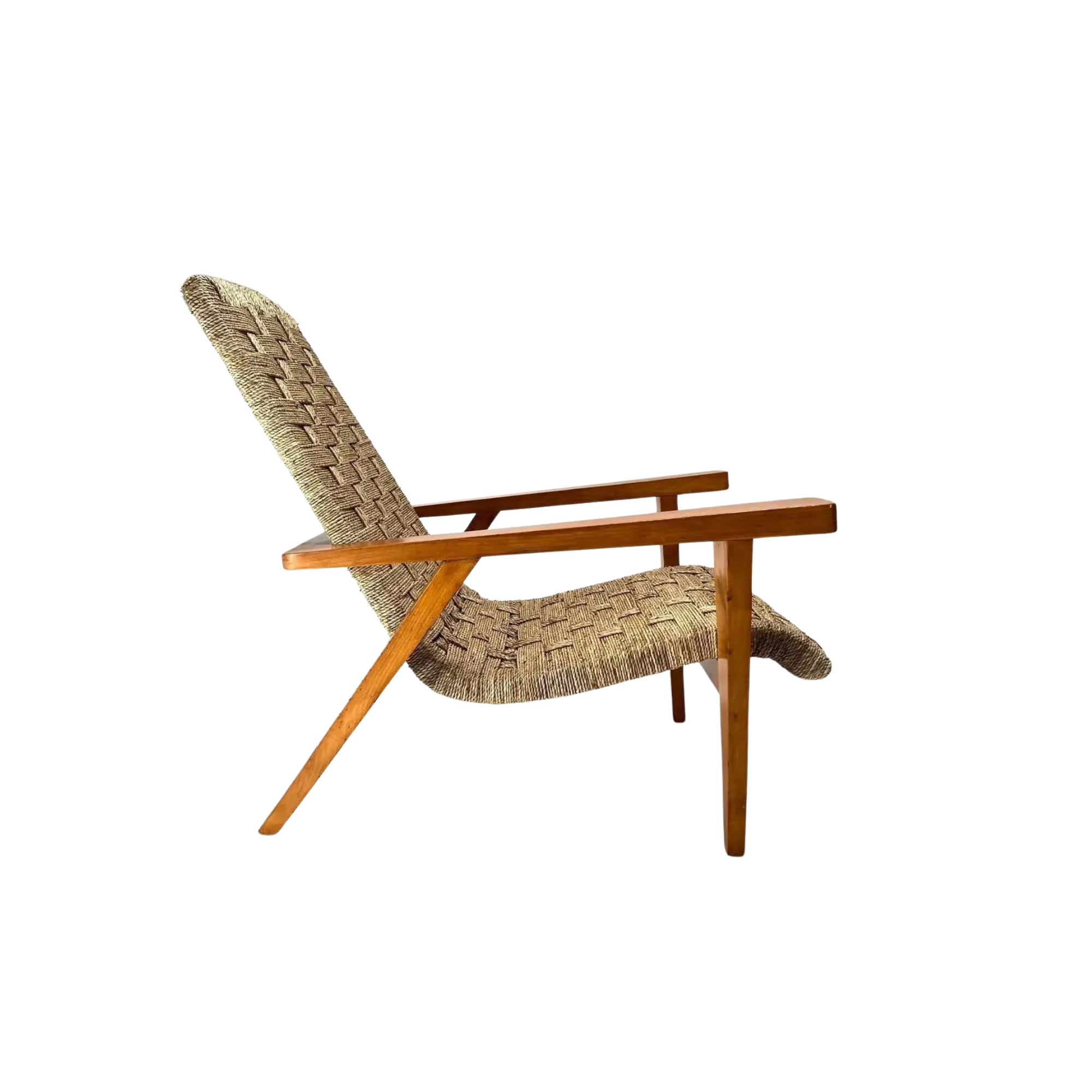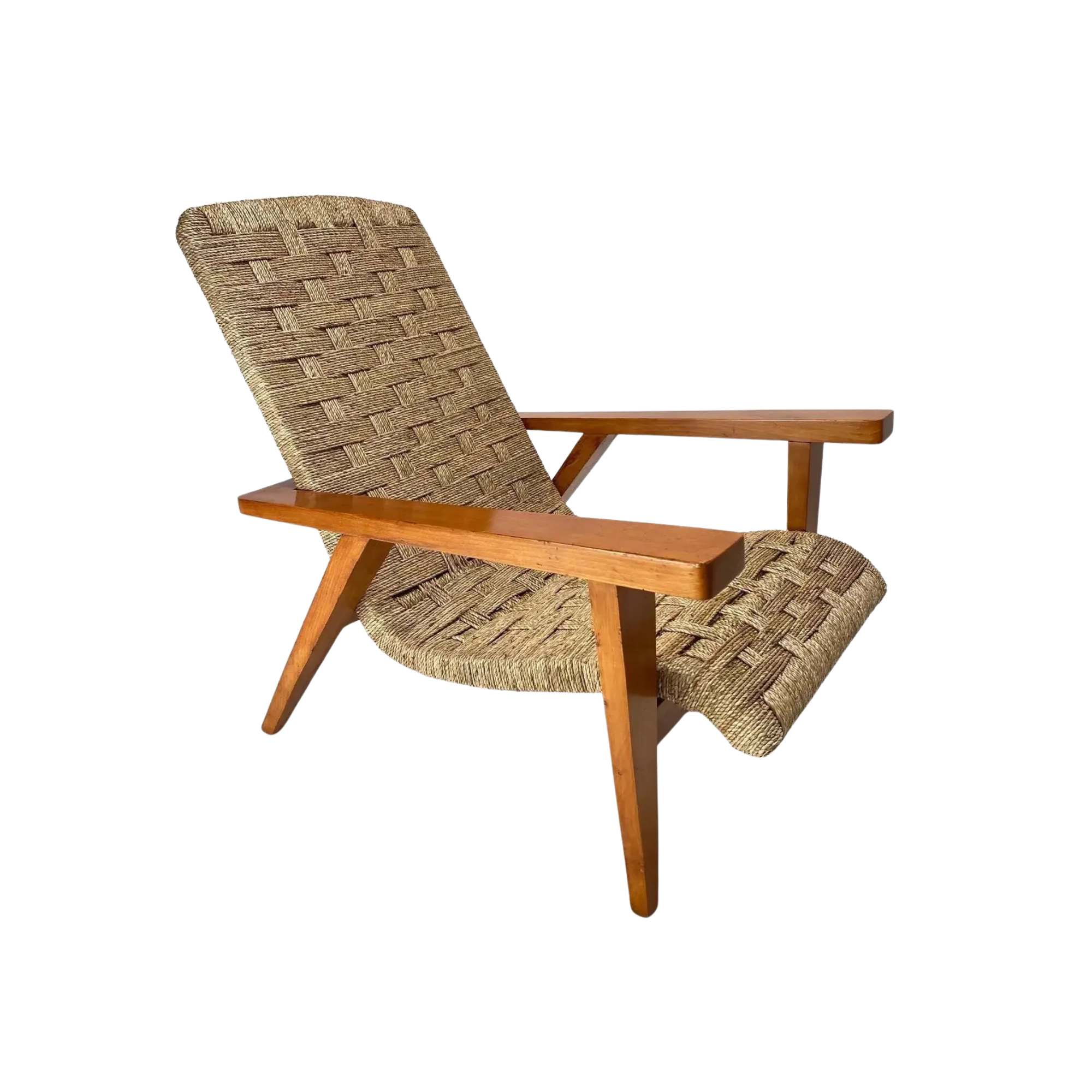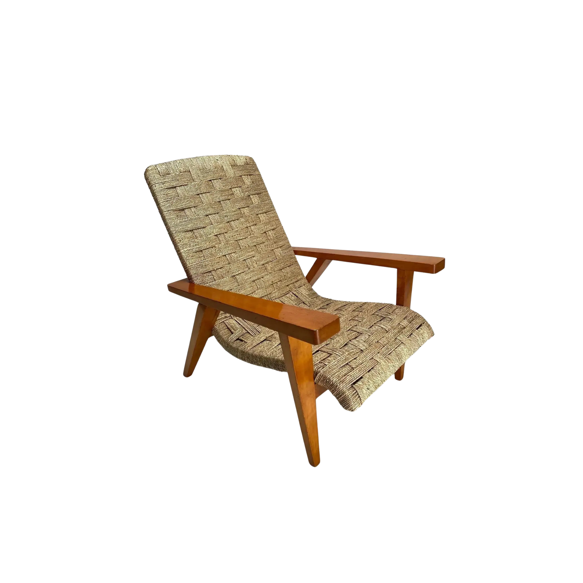 Rope Beach Wood Lounge Chair With Woven Rope Seat