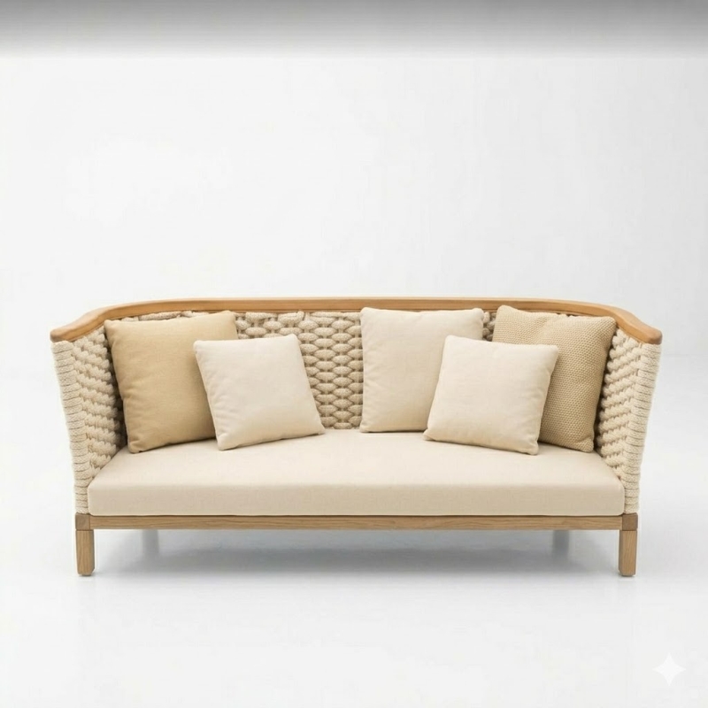 rope sofa teak wood with cream paracord