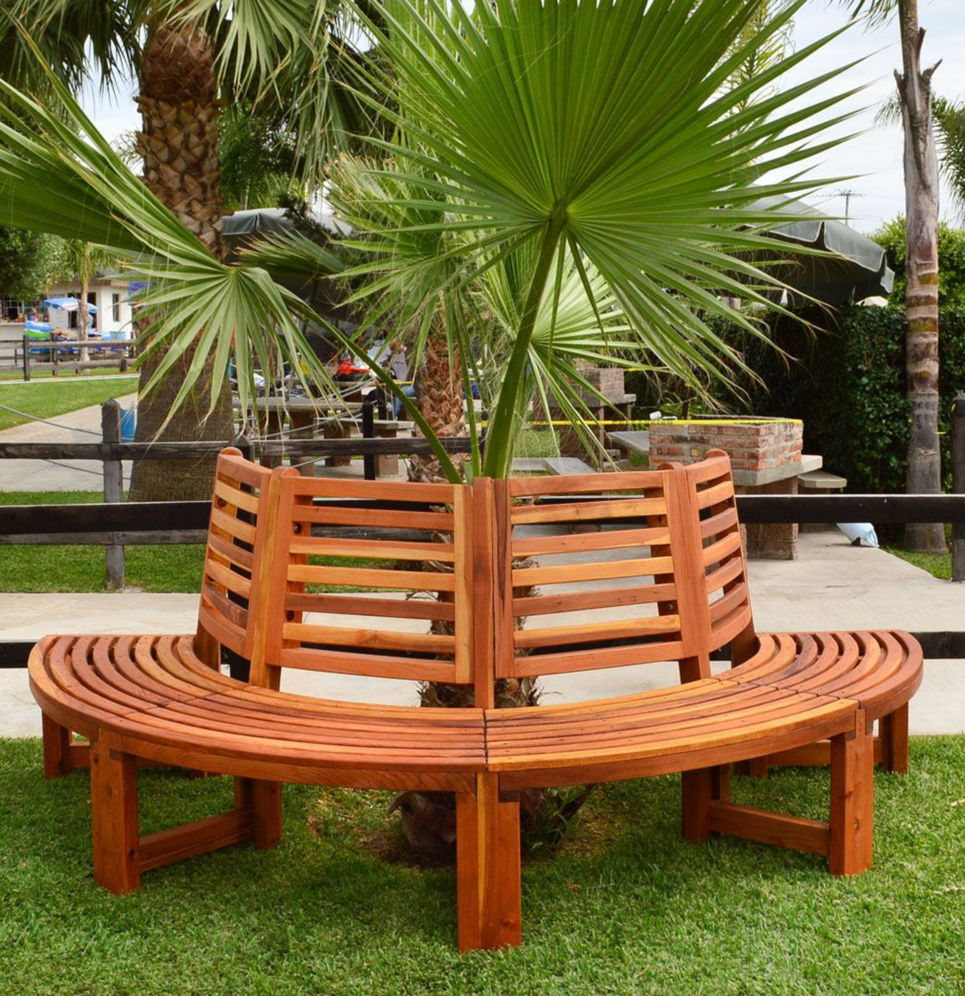 Round Wooden with Backrest-Solid Wood Outdoor Garden Seating