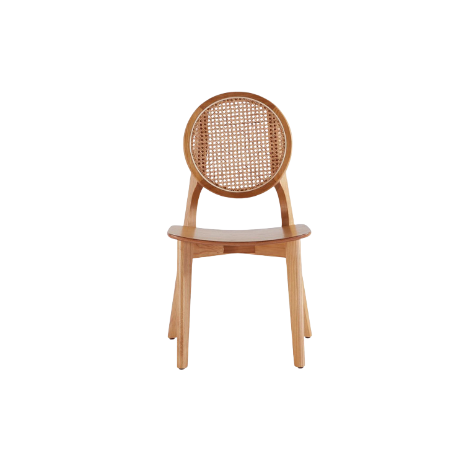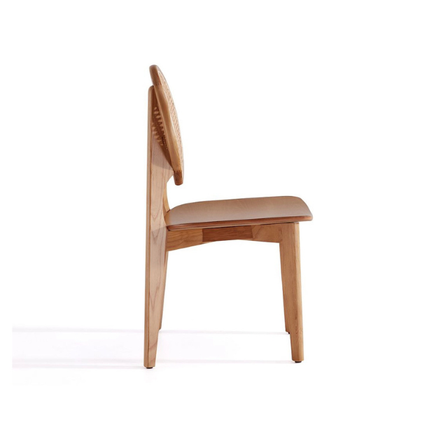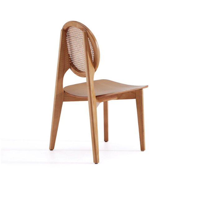 Rounded Wooden Cafe Chair with Rattan Backrest Design