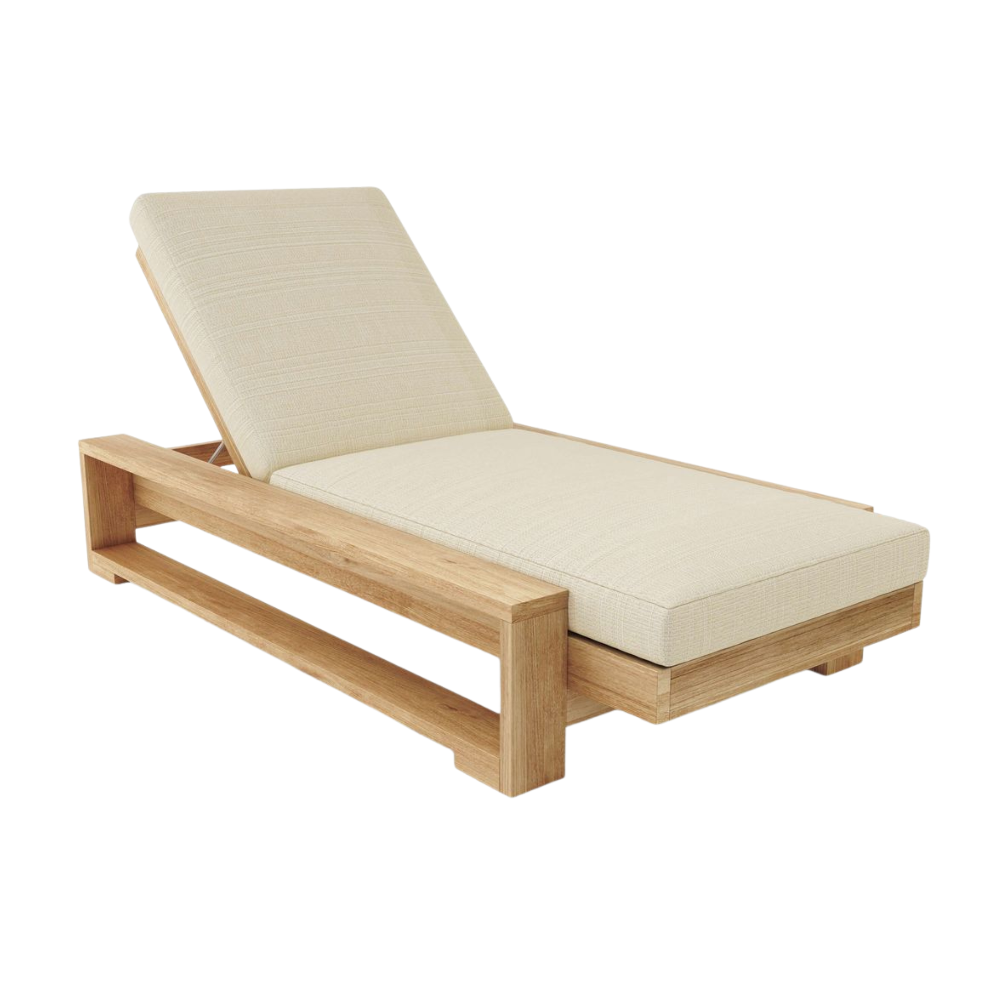 Sun Lounger Kayu Minimalis dengan Cushion Cream untuk Outdoor