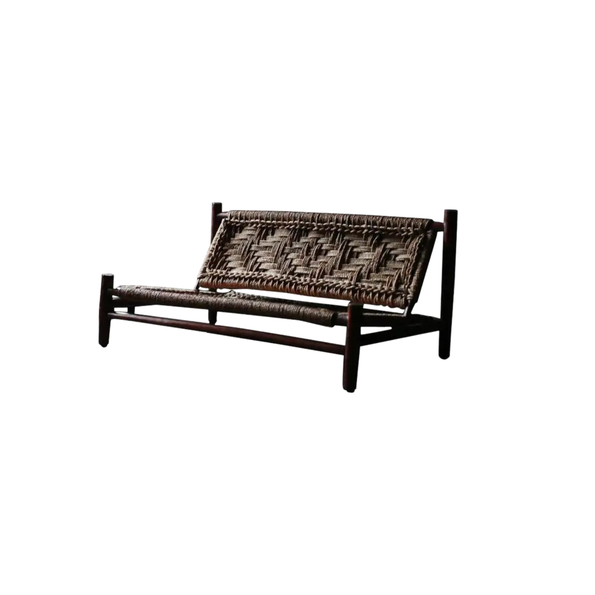Teak Wood Bench with Handwoven Rope Backrest