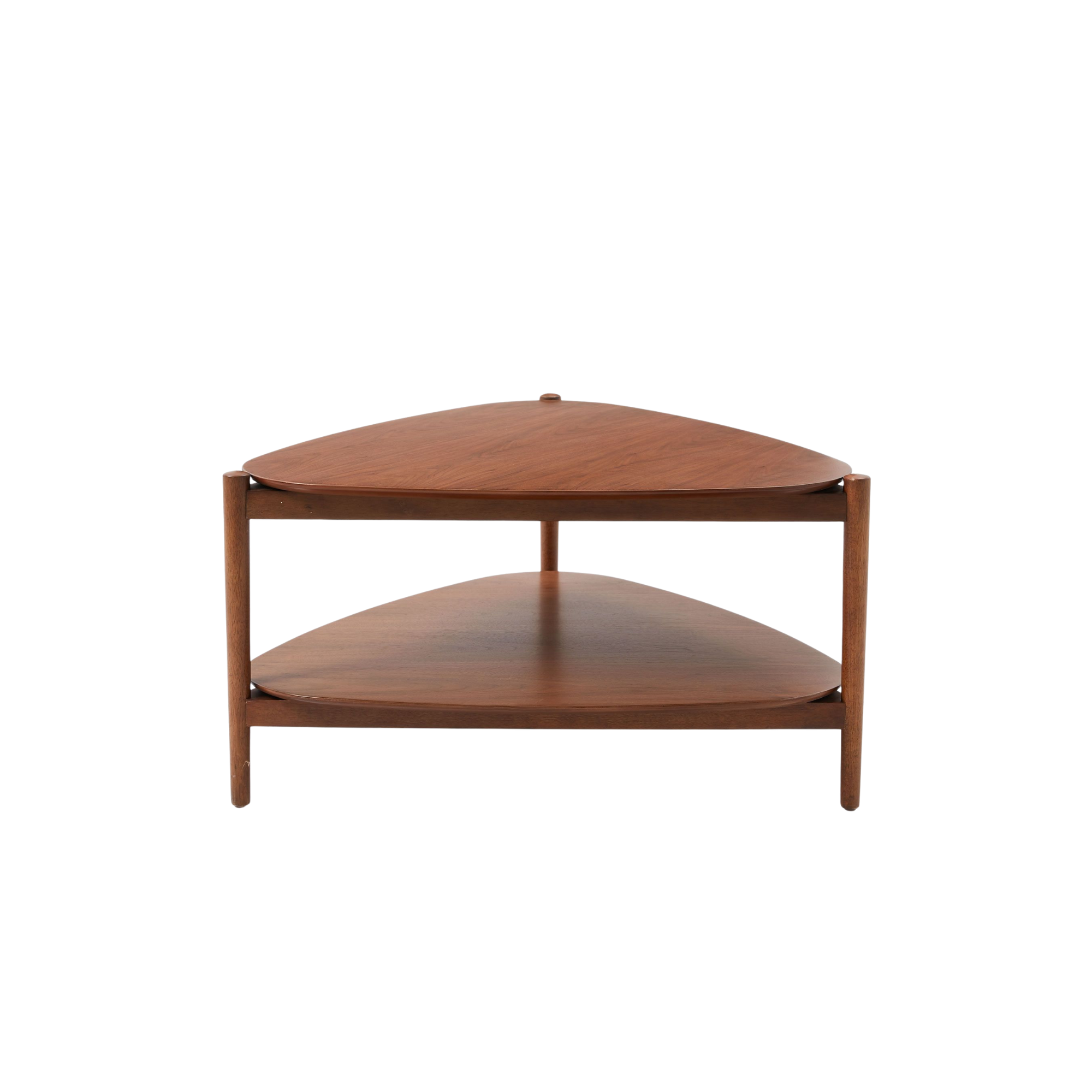 Wood Modern Coffee Table Triangular Shape and Lower Shelf